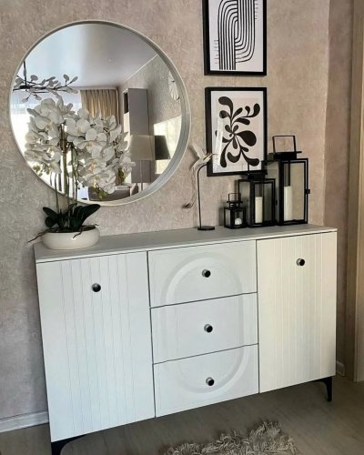 Консоль у входа: Первое впечатление! Узкий силуэт + эффектный декор (ваза, зеркало, арт-объект) создают мгновенный wow-эффект и зону визуальной паузы.