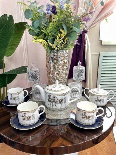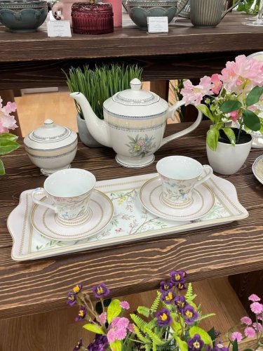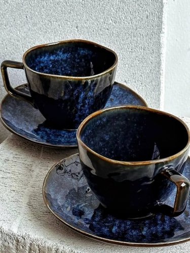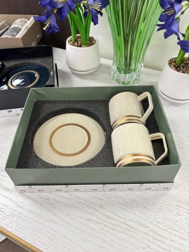 Фарфоровая чайная пара с изящным рисунком.